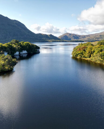 Pass under the Toothache Bridge into the Middle Lake, where you’ll witness the stunning views of Torc Mountain and the legendary Colleen Bawn Rock. Keep your eyes on the sky, you might be lucky enough to spot the magnificent White-Tailed Eagles soaring above the mountains.